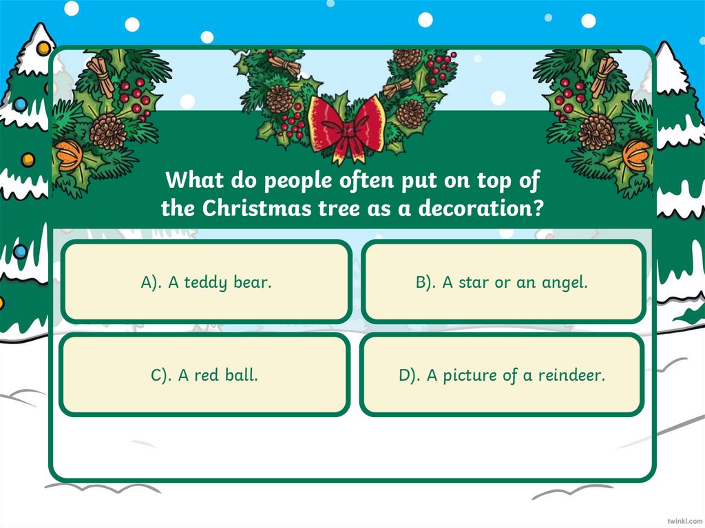 What do people often put on top ofthe Christmas tree as a decoration?