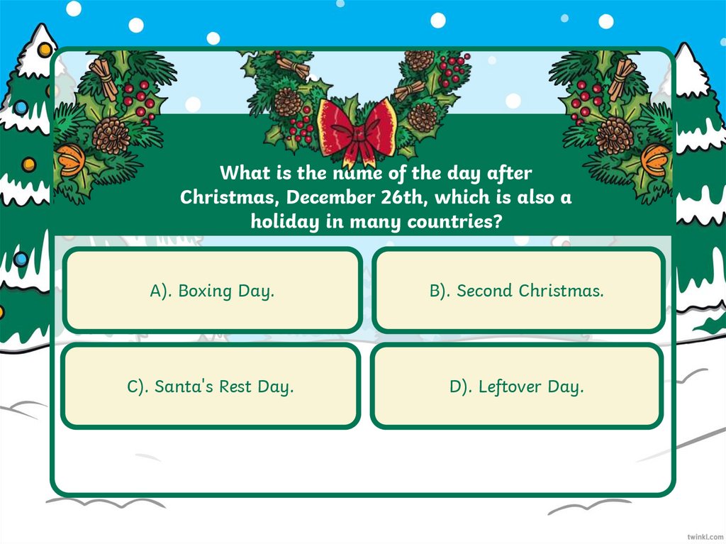 What is the name of the day afterChristmas, December 26th, which is also a