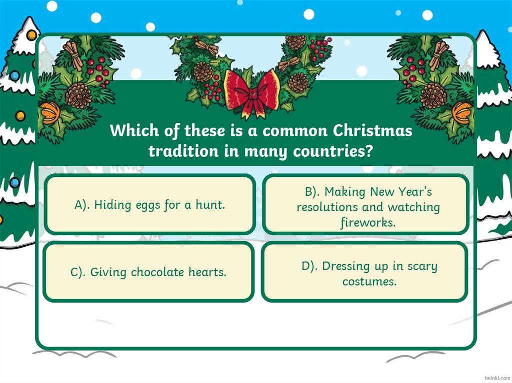 Which of these is a common Christmastradition in many countries?