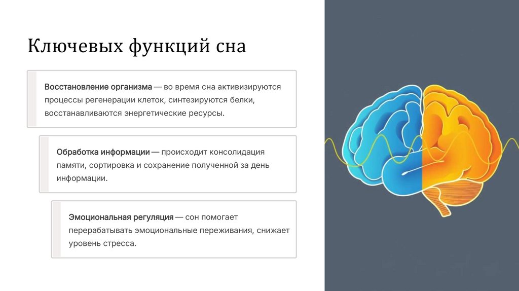 Ключевых функций снаВосстановление организма — во время сна активизируются