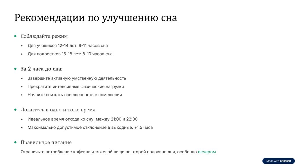 Ограничьте потребление кофеина и тяжелой пищи во второй половине дня, особенно вечером.