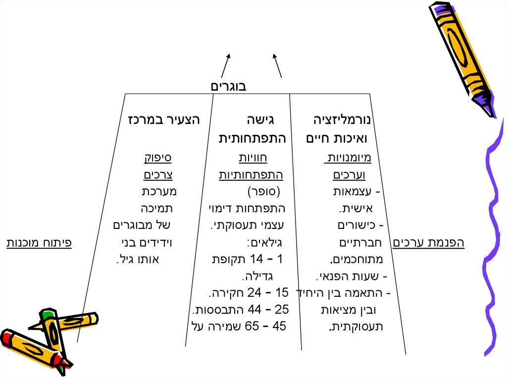 שעות הפנאי. התאמה בין היחיד 24 – 15חקירה. 44 – 25התבססות.