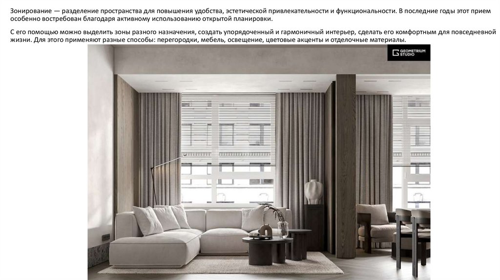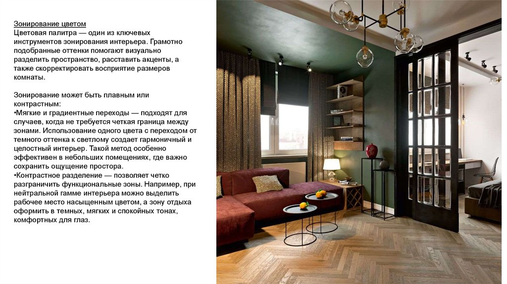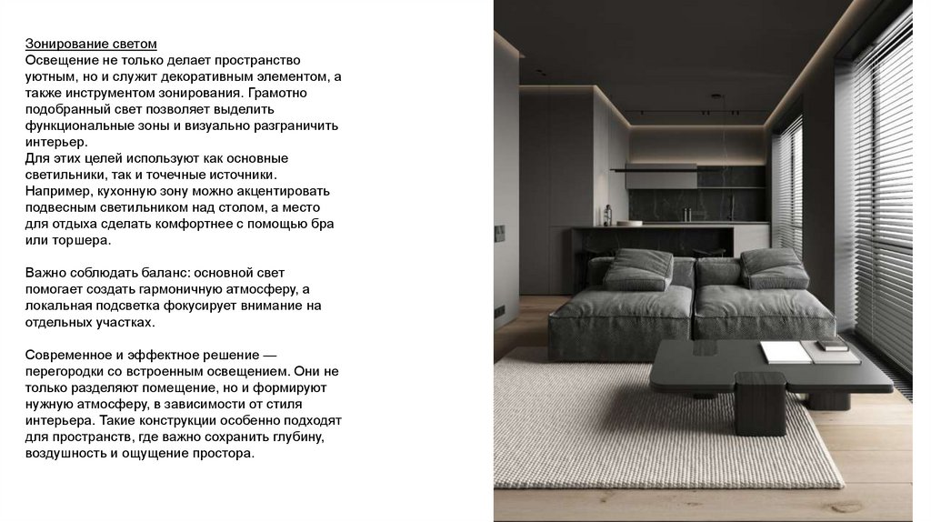 пространства, но и акцентируют внимание на отдельных зонах, выделяя их функциональное назначение.