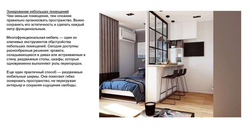 Зонирование небольших помещенийЧем меньше помещение, тем сложнее