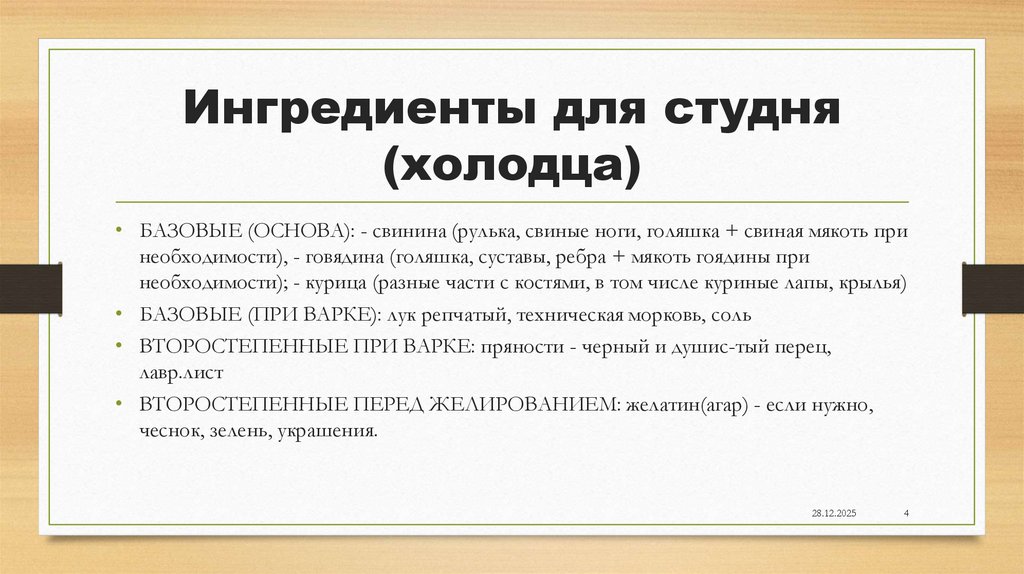 • БАЗОВЫЕ (ОСНОВА): - свинина (рулька, свиные ноги, голяшка + свиная мякоть при