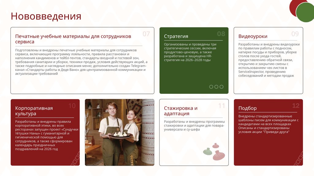 и спешлы-вкладки, а также улучшена подача блюд за счёт