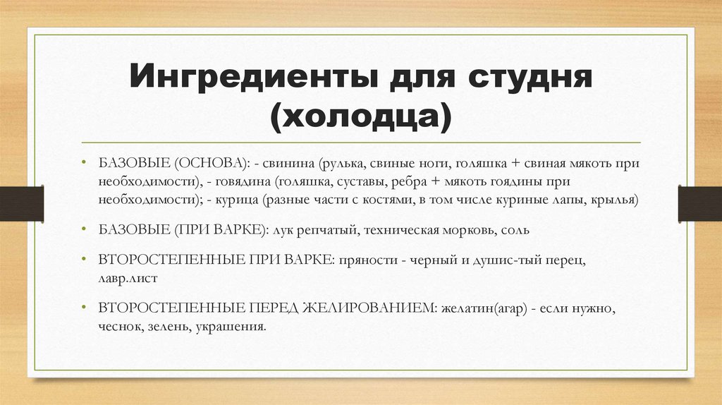 • БАЗОВЫЕ (ОСНОВА): - свинина (рулька, свиные ноги, голяшка + свиная мякоть при