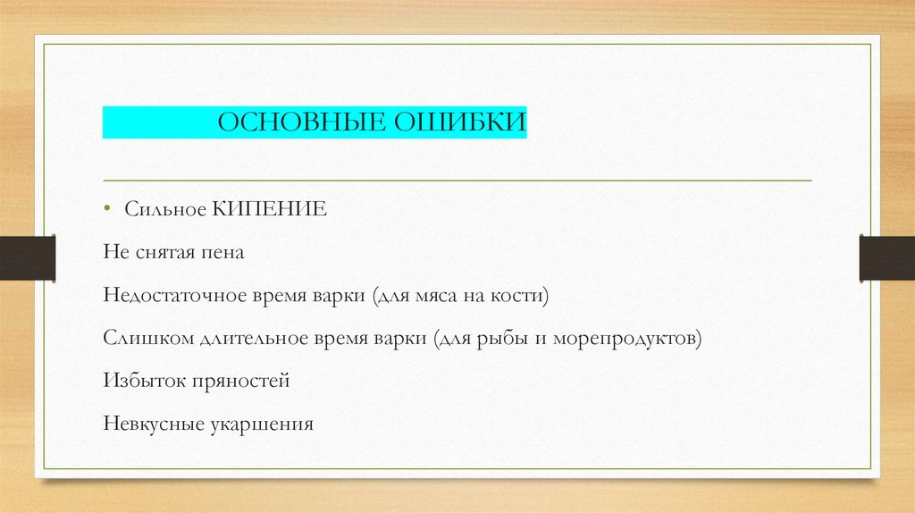 ОСНОВНЫЕ ОШИБКИ• Сильное КИПЕНИЕ