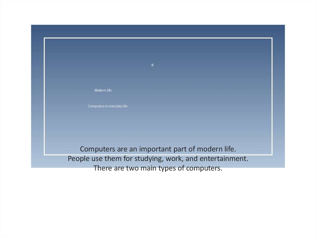 Computers are an important part of modern life.People use them for studying, work, and entertainment.