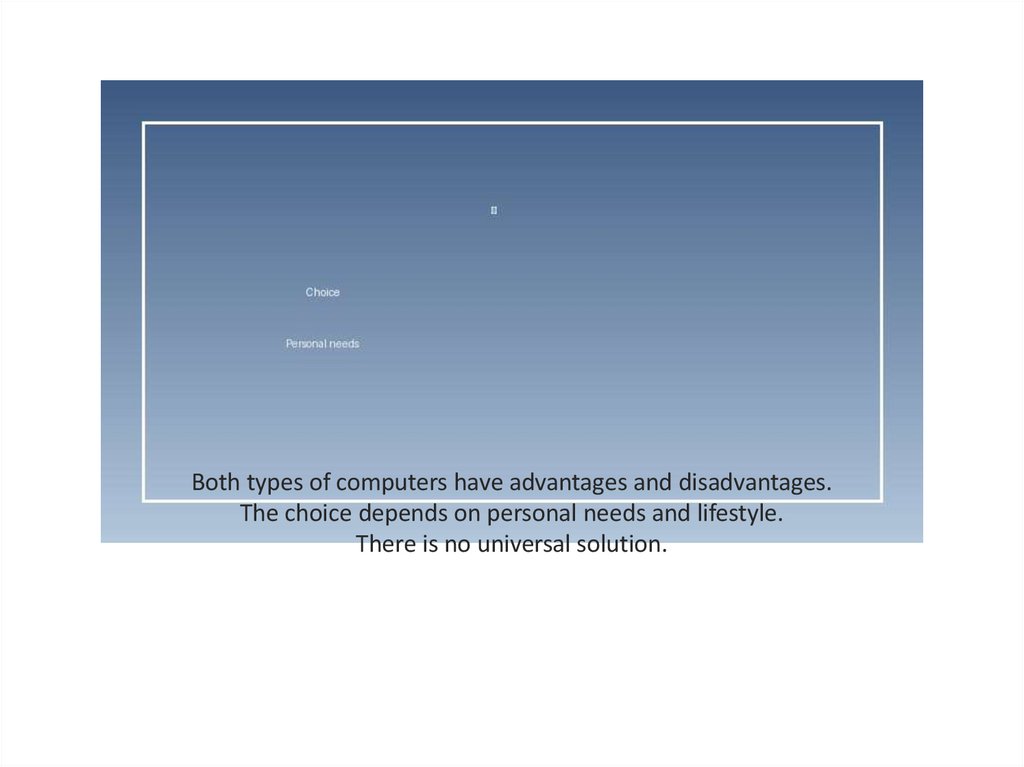Both types of computers have advantages and disadvantages.The choice depends on personal needs and lifestyle.