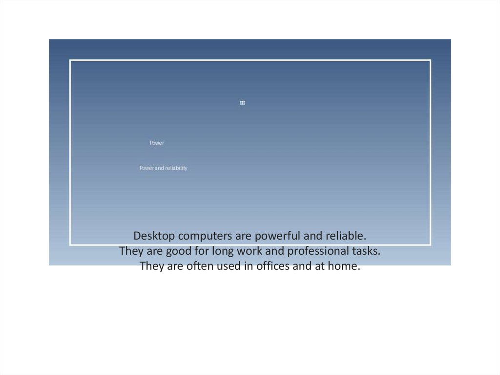 Desktop computers are powerful and reliable.They are good for long work and professional tasks.