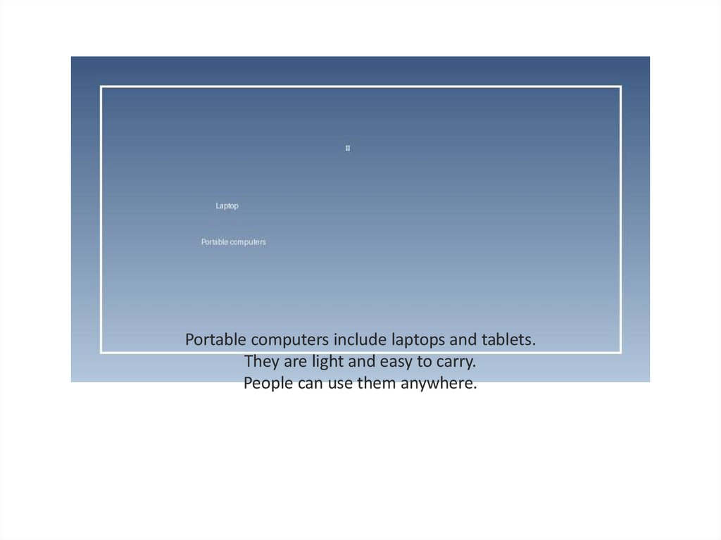 Portable computers include laptops and tablets.They are light and easy to carry.