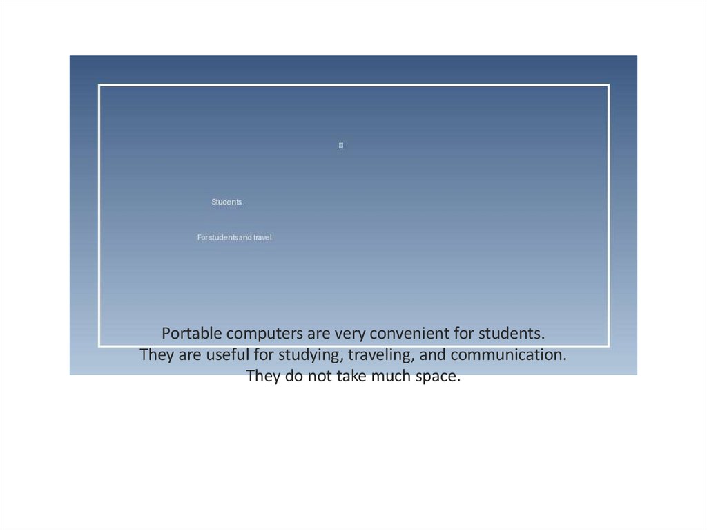 Portable computers are very convenient for students.They are useful for studying, traveling, and communication.