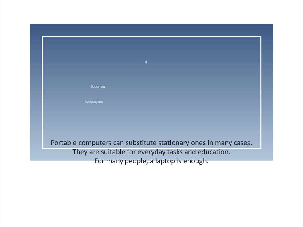 Portable computers can substitute stationary ones in many cases.They are suitable for everyday tasks and education.