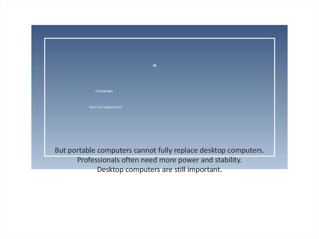But portable computers cannot fully replace desktop computers.Professionals often need more power and stability.