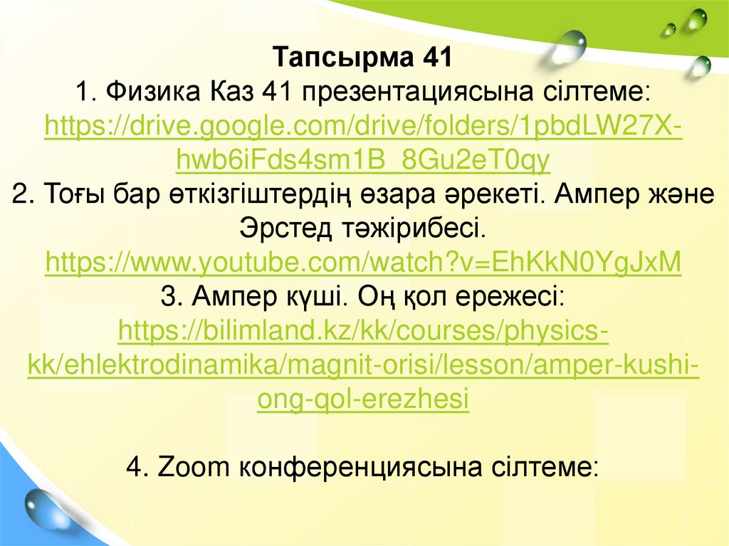 Тапсырма 411. Физика Каз 41 презентациясына сілтеме: