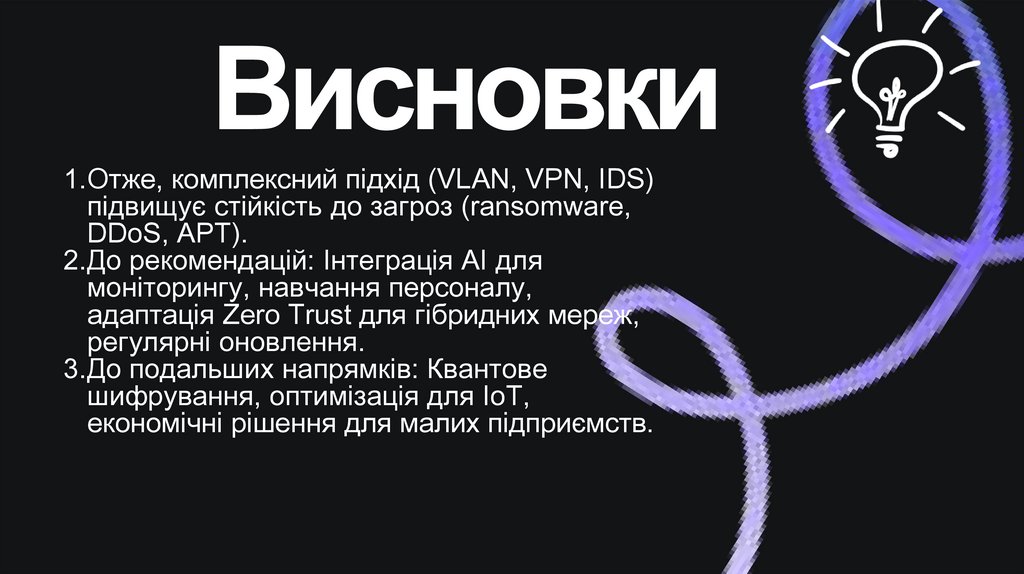 Висновки1.Отже, комплексний підхід (VLAN, VPN, IDS)