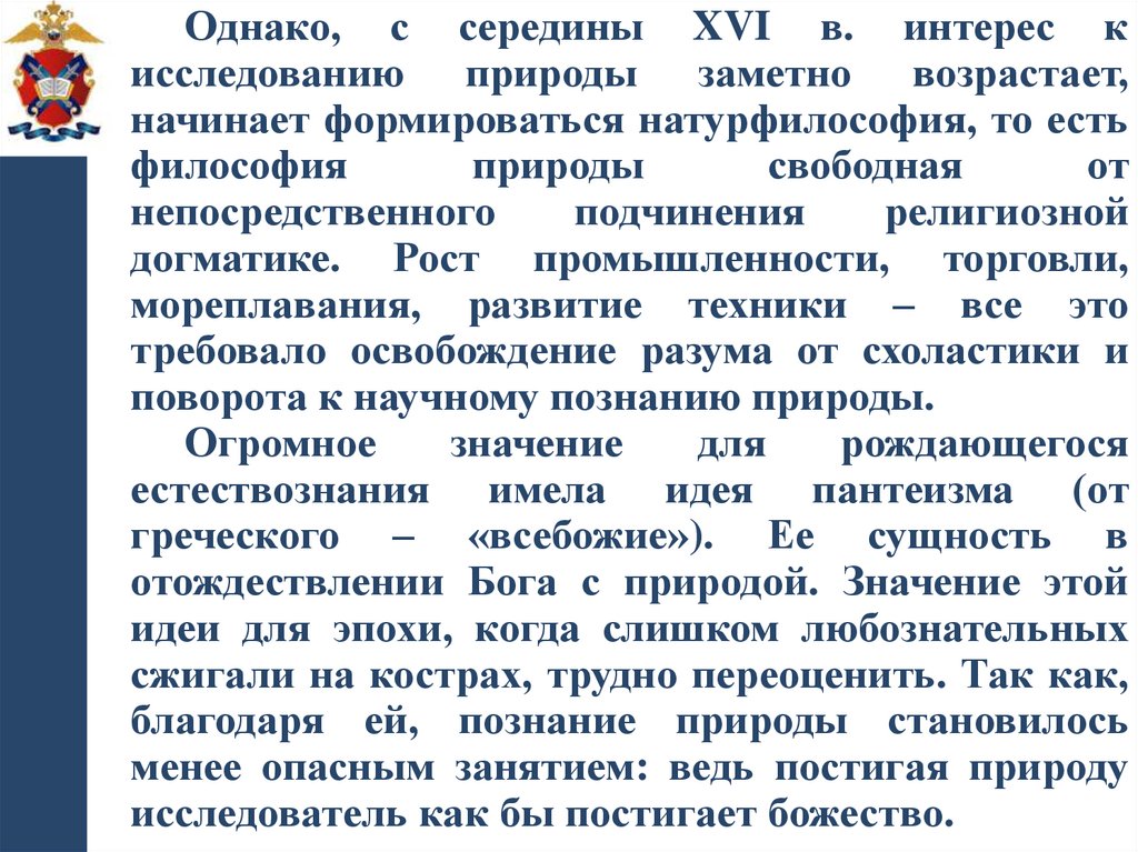 Чем объяснить значение идеи пантеизма для рождающегося естествознания?