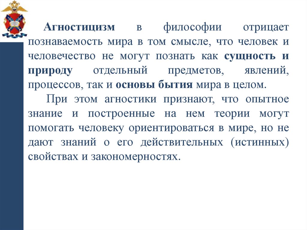 1. ПОНЯТИЕ ПОЗНАНИЯ.АГНОСТИЦИЗМ.
