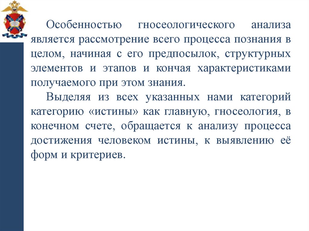Особенностью гносеологического анализаявляется рассмотрение всего процесса познания в