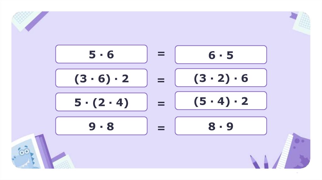 2 · (5 · 3) = 5 · (2 · 3) = 5 · 6 = 30
