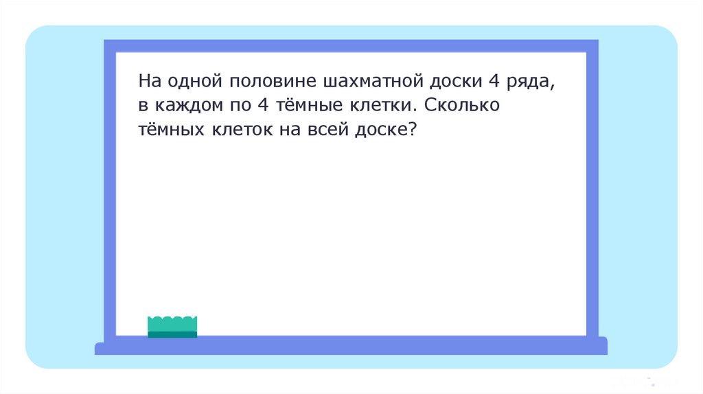 На одной половине шахматной доски 4 ряда,в каждом по 4 тёмные клетки. Сколько