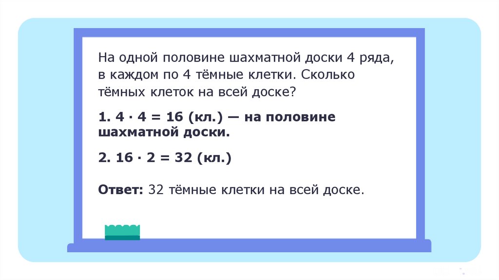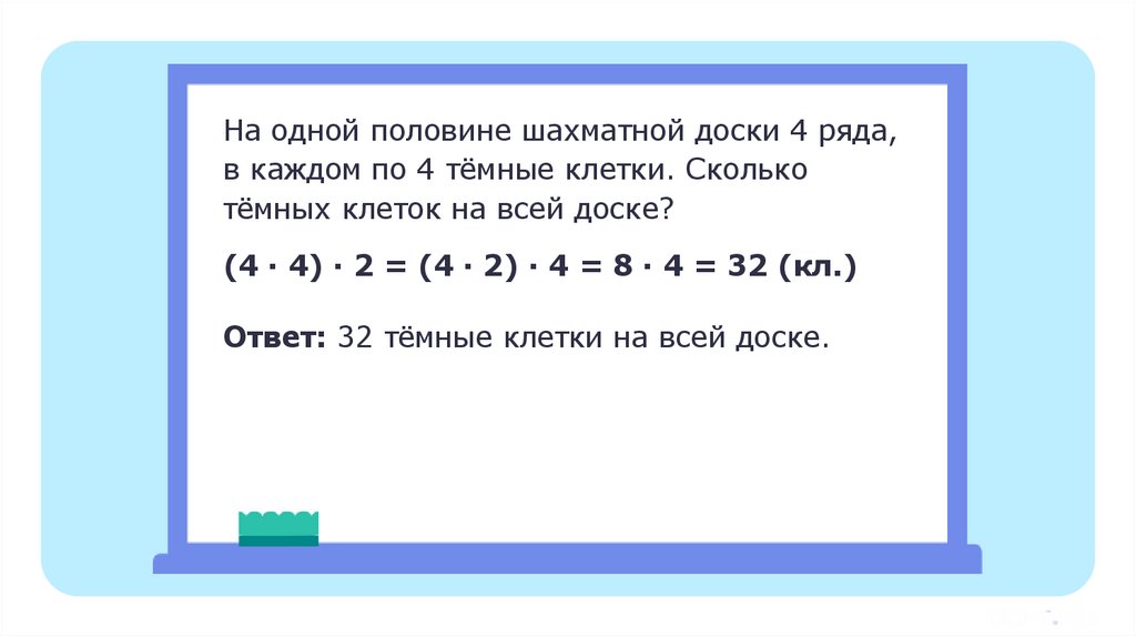 (4 · 4) · 2 = (4 · 2) · 4 = 8 · 4 = 32 (кл.)