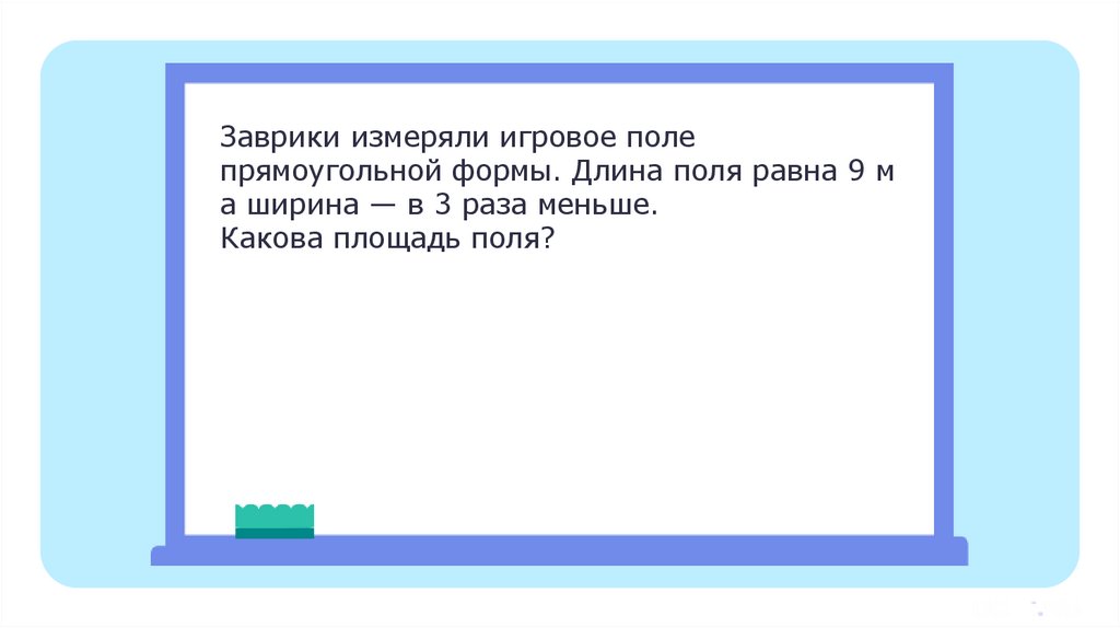 Заврики измеряли игровое полепрямоугольной формы. Длина поля равна 9 м
