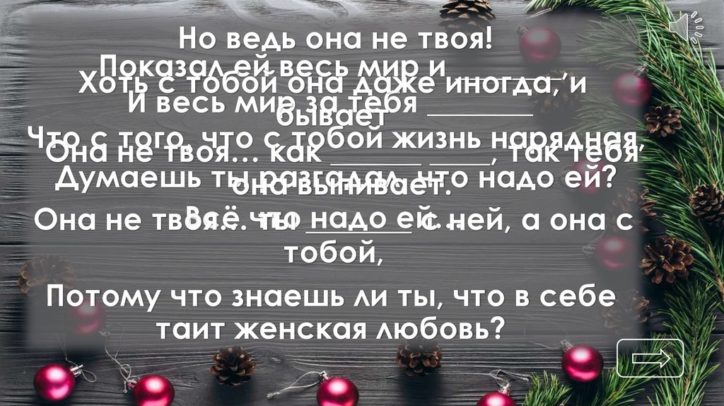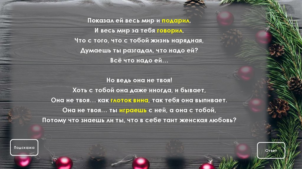 Показал ей весь мир и подарил,И весь мир за тебя говорил,