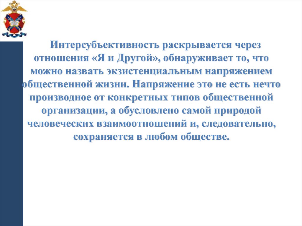 Интерсубъективность раскрывается черезотношения «Я и Другой», обнаруживает то, что
