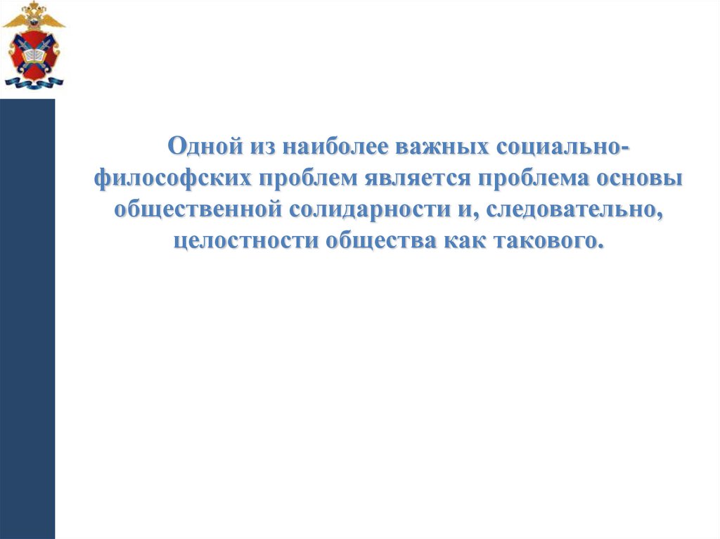 Одной из наиболее важных социальнофилософских проблем является проблема основыобщественной солидарности и, следовательно,