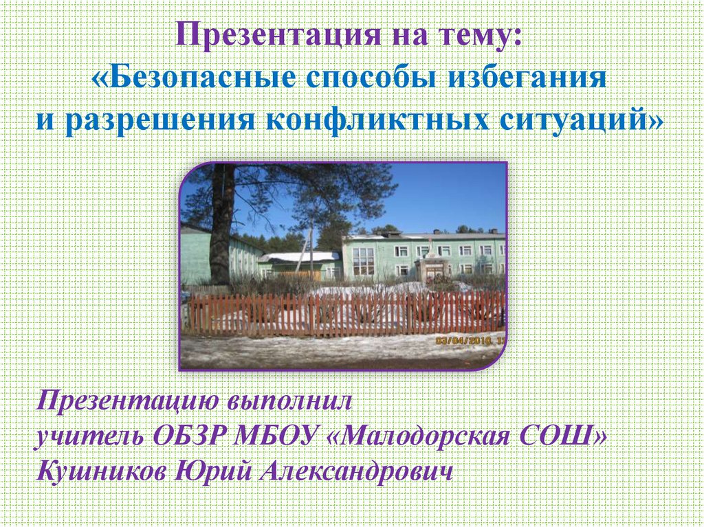 1. Презентация на тему: «Безопасные способы избегания и разрешения конфликтных ситуаций»