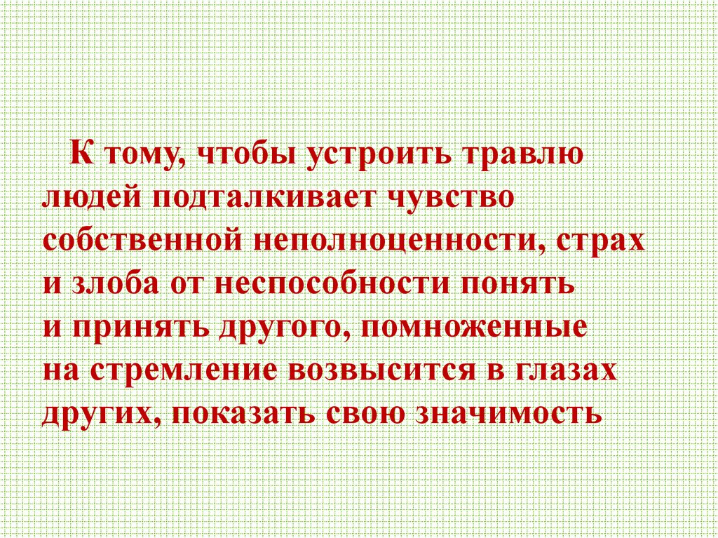 К тому, чтобы устроить травлюлюдей подталкивает чувство