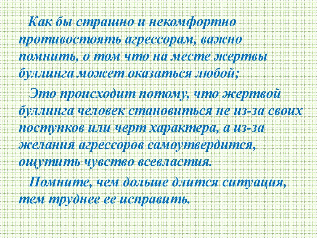 Как бы страшно и некомфортнопротивостоять агрессорам, важно