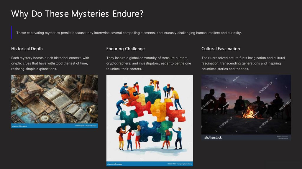 Why Do Thes e Mys teries Endure?These captivating mysteries persist because they intertwine several compelling elements, continuously challenging human intellect and curiosity.