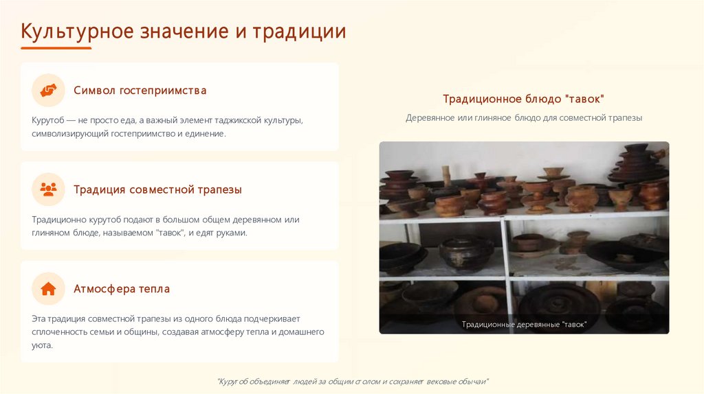"Курут об — эт о не прост о еда, а важный элемент т аджикской культ уры"