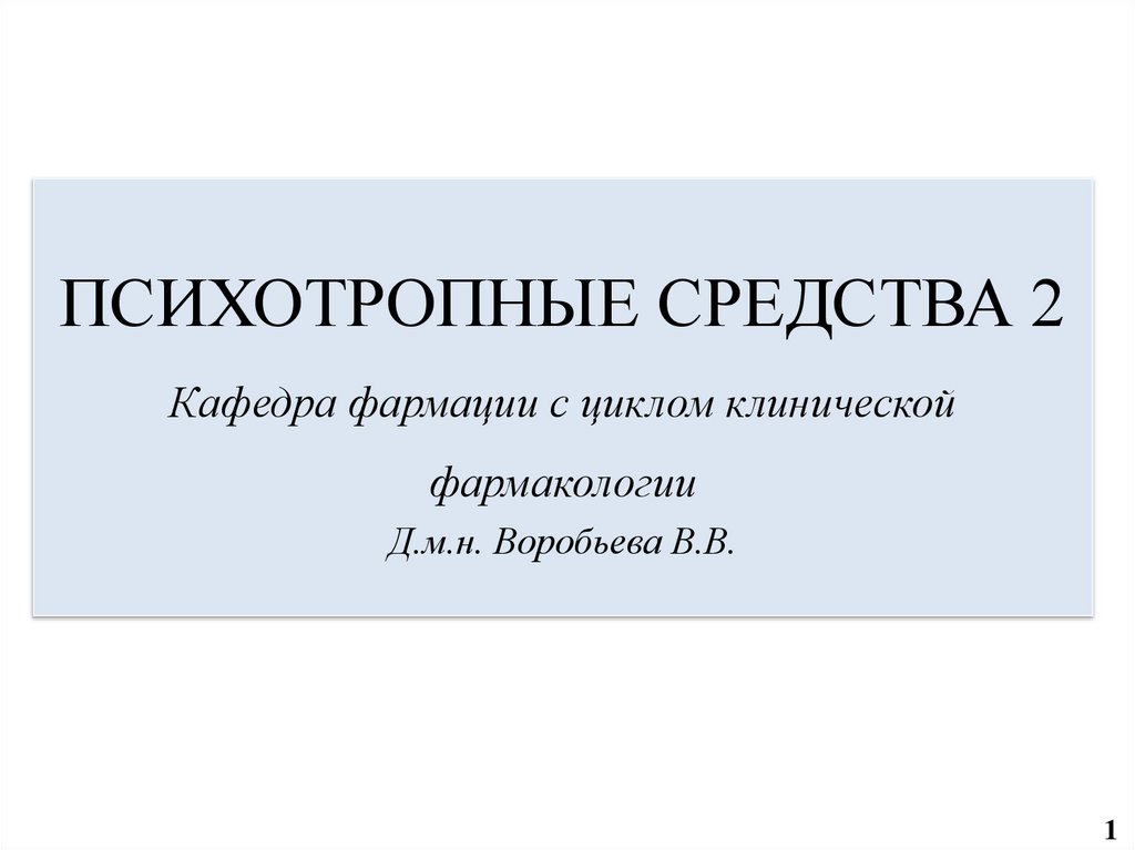 ПСИХОТРОПНЫЕ СРЕДСТВА 2Кафедра фармации с циклом клинической