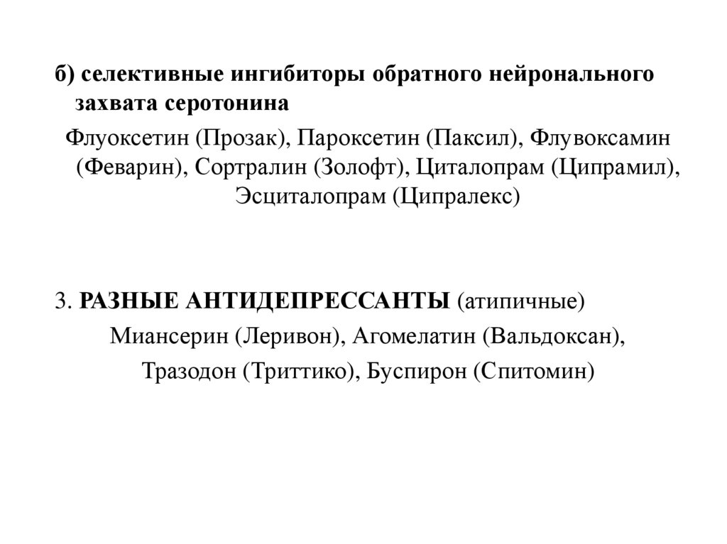 б) селективные ингибиторы обратного нейрональногозахвата серотонина