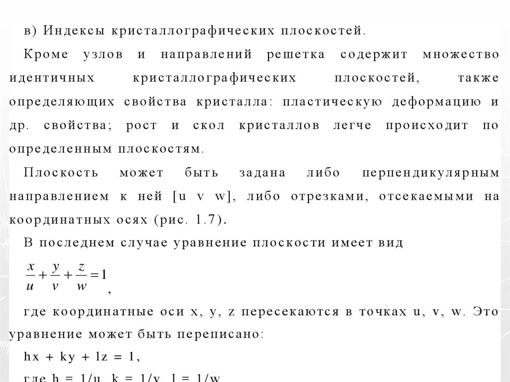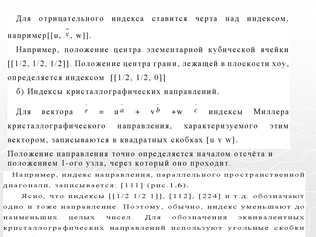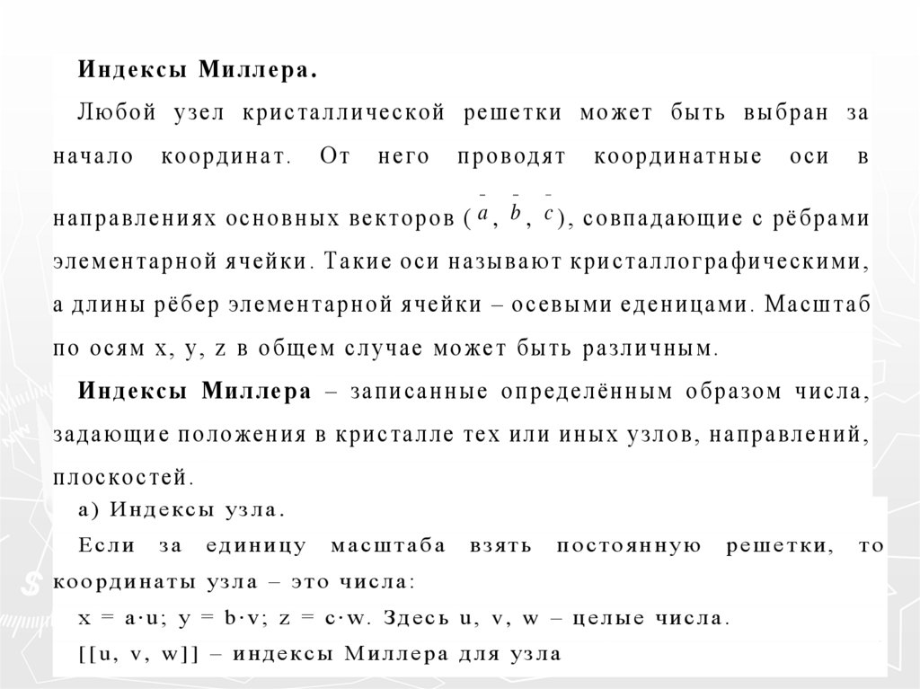 И н д е кс ы М и л л е р а .Л ю б о й уз е л к р и с т а л л и че с к о й р е ш е т к и м о ж е т б ы т ь в ы б р а н з а