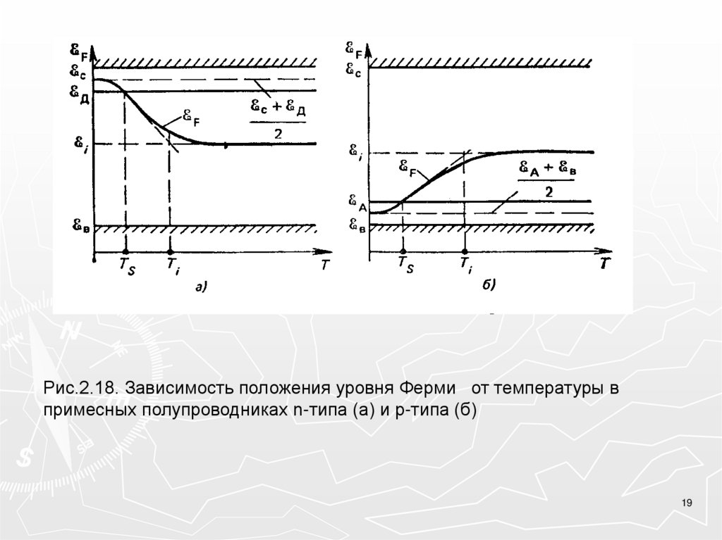 Положение уровня Ферми и концентрация носителей заряда в полупроводниках ртипа определяются так же, как и для полупроводников n-типа.