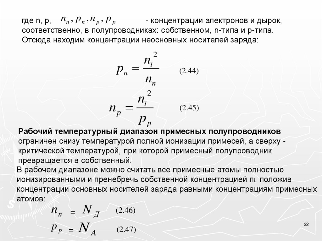 где n, р, n n , p n , n p , p p- концентрации электронов и дырок,