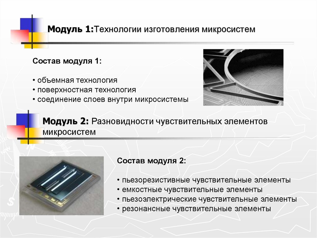 Модуль 1:Технологии изготовления микросистемСостав модуля 1: