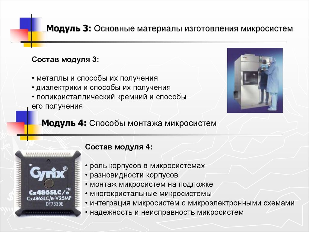 Модуль 3: Основные материалы изготовления микросистемСостав модуля 3:
