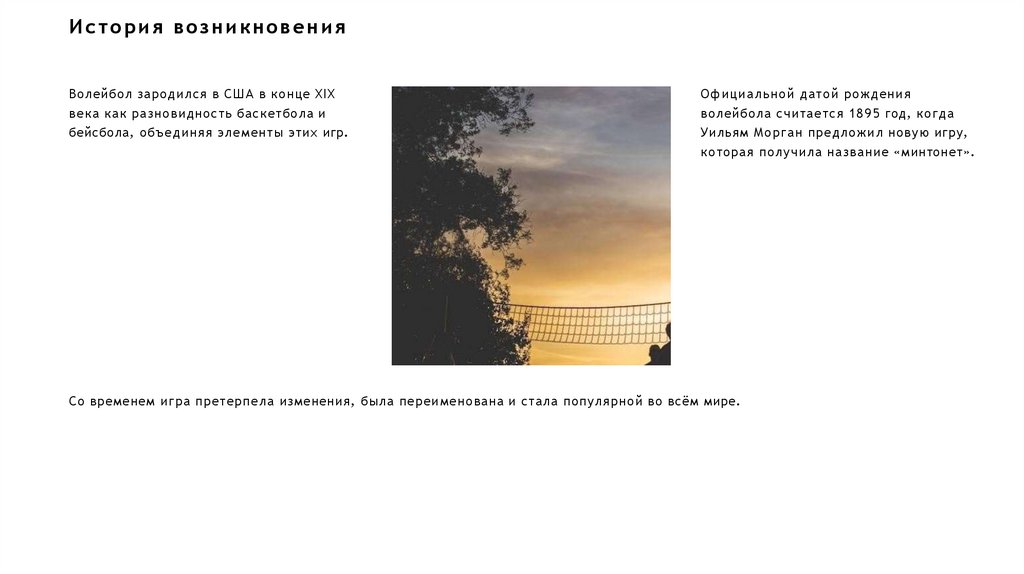 И с т о р и я возникнов ени яВолейбол зародился в С Ш А в конце XIX