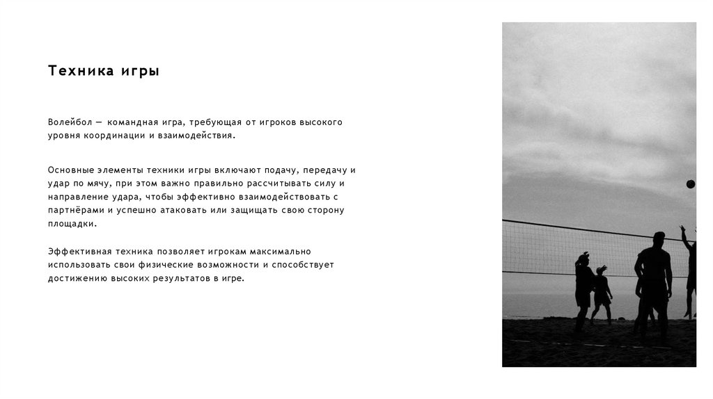Т ехн и ка и г р ыВолейбол — командная игра, требующая от игроков высокого