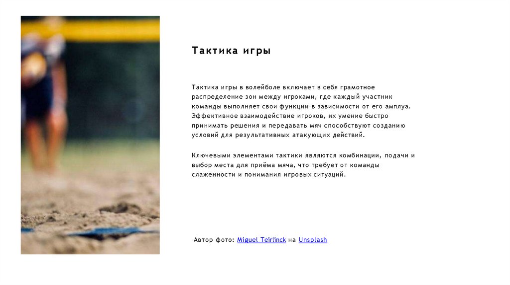 Тактика игрыТактика игры в волейболе включает в себя грамотное
