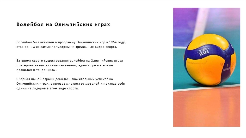 В о л е й б о л н а О л и м п и й с к и х играхВолейбол был включён в программу Олимпийских игр в 1 9 6 4 году,