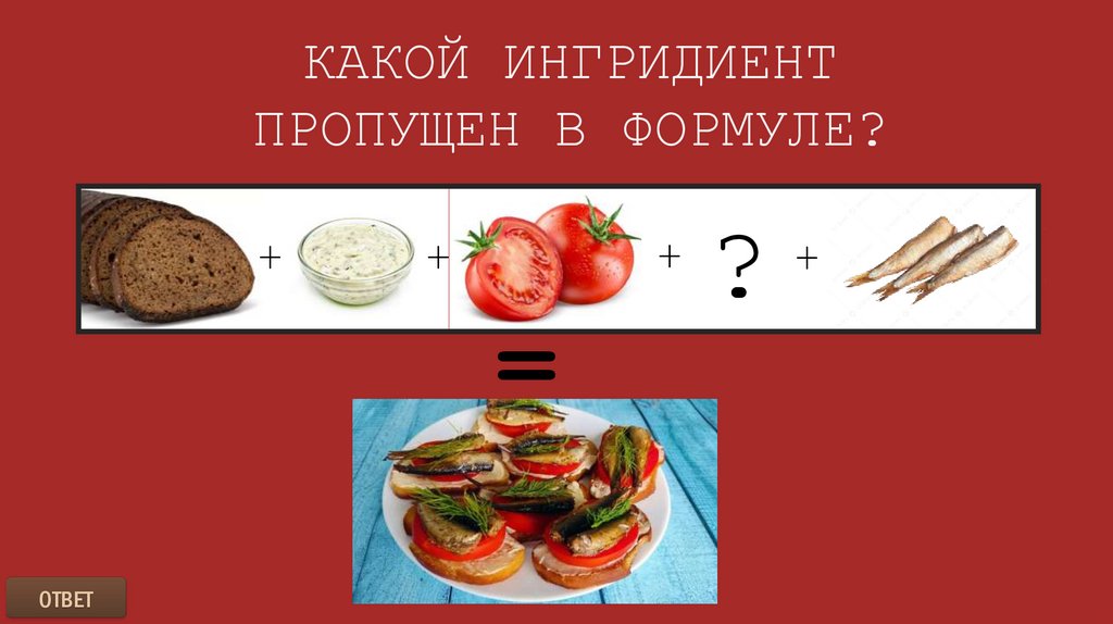 КАКОЙ ИНГРИДИЕНТПРОПУЩЕН В ФОРМУЛЕ?