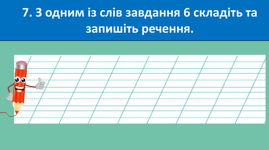 7. З одним із слів завдання 6 складіть тазапишіть речення.