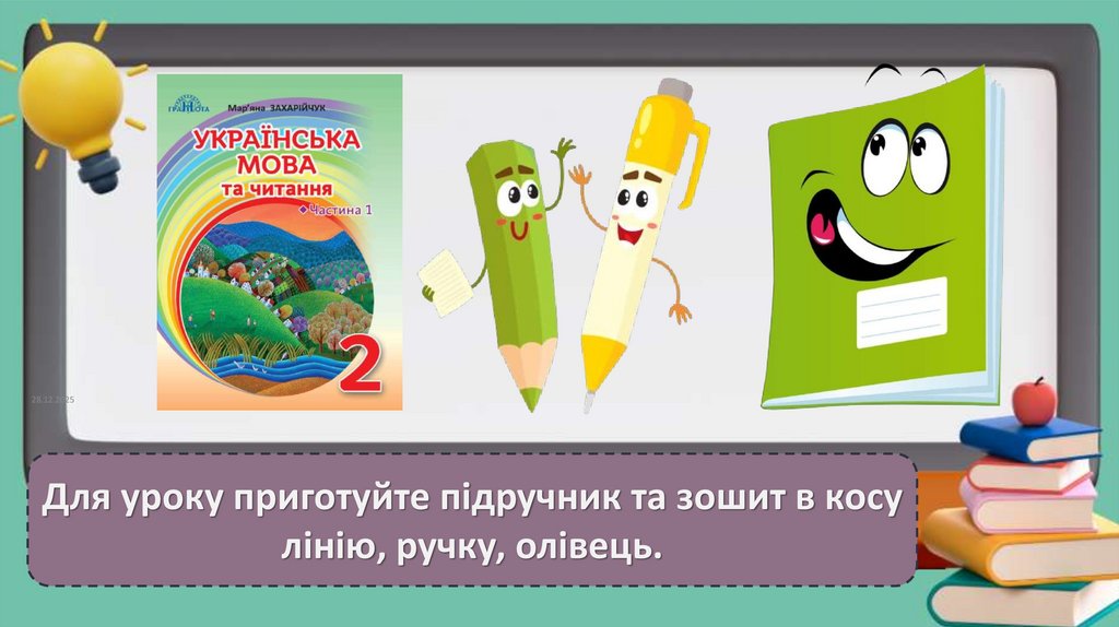 28.12.2025Для уроку приготуйте підручник та зошит в косу